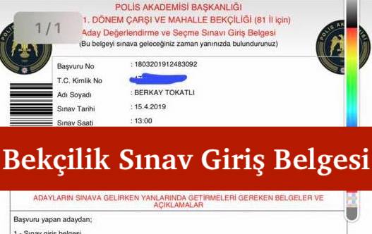 Çarşı ve mahalle bekçisi olmak isteyen adayların teslim etmeleri gereken belgelerden biri de bekçilik sınav giriş belgesidir. 2019 1. ve 2. dönem bekçilik başvurusu yapan adayların bekçilik sınav giriş belgeleri Polis Akademisi internet sitesi üzerinden duyuruldu. Siz de aşağıda paylaşacağımız adreslerden 2019 bekçilik sınav giriş belgenize ulaşabilirsiniz. Sınav giriş belgesini görebilmeniz için sınav başvuru ücretini yatırmış olmanız gerekmektedir. Her işlemi yapmanıza rağmen “bu kişiye ait sistemimizde sınav giriş belgesi bulunmamaktadır” uyarısı görüyorsanız BURADAKİ makalemize bakınız.