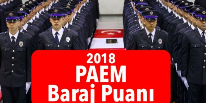 2018 PAEM BARAJ PUANI belli oldu: 2017 ve 2018 yılı KPSS lisans P3 puan türünden (70,000) taban puan veya üzerinde puan almış olmak, Emniyet Teşkilatı personeli şehit veya vazife malulü eş veya çocukları için en az (63,000) taban puanı almış olmak şartı aranıyor.