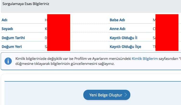 Buradan askerlik durum bilgilerinizi içeren barkodlu belge oluşturabilirsiniz. Bu belge resmi evrak olarak Polis Akademisi ve tüm kurumlar tarafından kabul edilecektir. Onay kutucuğunu tıklayarak devam edin. Sorgulamaya esas bilgileriniz gelecektir. Doğru ise yeni belge oluştur butonuna basın: