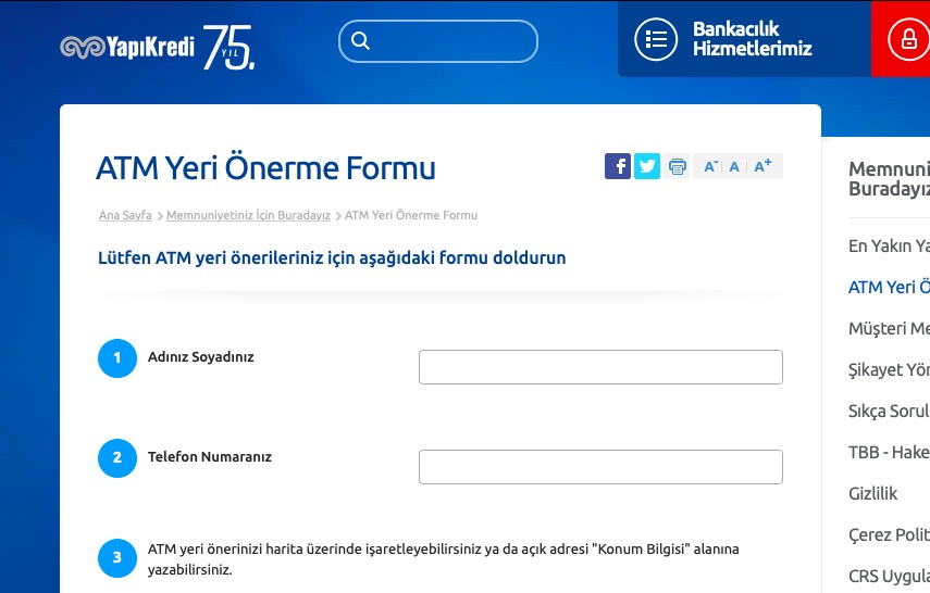 Yukarıda ifade ettiğimiz özelliklere sahip boş ya da dolu mülkünüz varsa öneri formlarını doldurarak kiralama yapabilirsiniz. Site içleri ya da dükkanların sokağa bakan kısımları da bankalar tarafından atm yeri olarak kullanılabilmektedir. ATM yeri olarak tayin edilecek lokasyonun 4 metre kare civarında olması yeterlidir. Altyapı, elektrik ve internet gibi sorunların halledilmiş olması da yerinizin bankalar tarafından seçilmesi için ek avantaj sağlayacaktır. Aşağıdaki bankalar başvuru formları ile ATM yeri önerisi almaktadırlar: