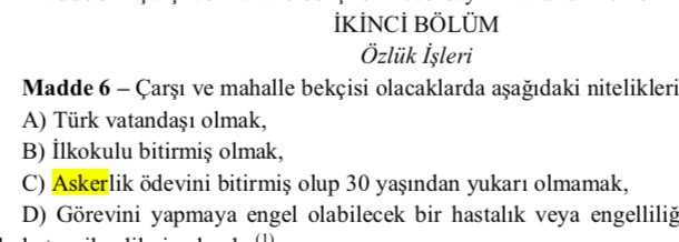 yazıyor bu durum bekçilik için engelmidir ? şimdiden teşekkürler