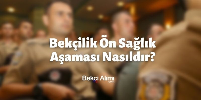 Bekçilik ön sağlık aşaması nasıldır sorusu verilecek olan evraklarla birlikte başlar. Adaylara bu sırada sağlık testi başlatılır. Adayın ilk olarak boyuna ve kilosuna bakılır. Boy ve kilo sınırını geçemeyen adaylar doğrudan elenir ve bir sonraki aşamaya geçemez. Bu testleri geçen aday renk körlüğü testine alınır. Renk körlüğü testi esnasında kitaptan renk körlüğünde kullanılan sayıların ve şekillerin okutulması sağlanır. Bu işlem esnasında eğer ki aday kitap üzerindeki renkler arasından sayıları okuyamazsa renk körü olarak kabul edilir ve yine elenir.