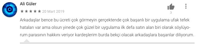 Yukarıdaki geliştirmeler android cihazlar için geçerli olup Play Store üzerinden uygulamamızı satın alabilir, 2 saat içinde beğenmezseniz koşulsuz sistem üzerinden iade edebilirsiniz. Aşağıda videoda genel kullanım halini sizlerle paylaştık. İndirmek İçin LOGOYA TIKLAYI