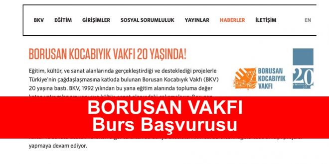 Borusan Vakfı yaptığı duyuru ile 2020-2021 bursu için başvurularını okul ofislerinden 15 Eylül 2020 tarihine kadar alacağını belirtti.