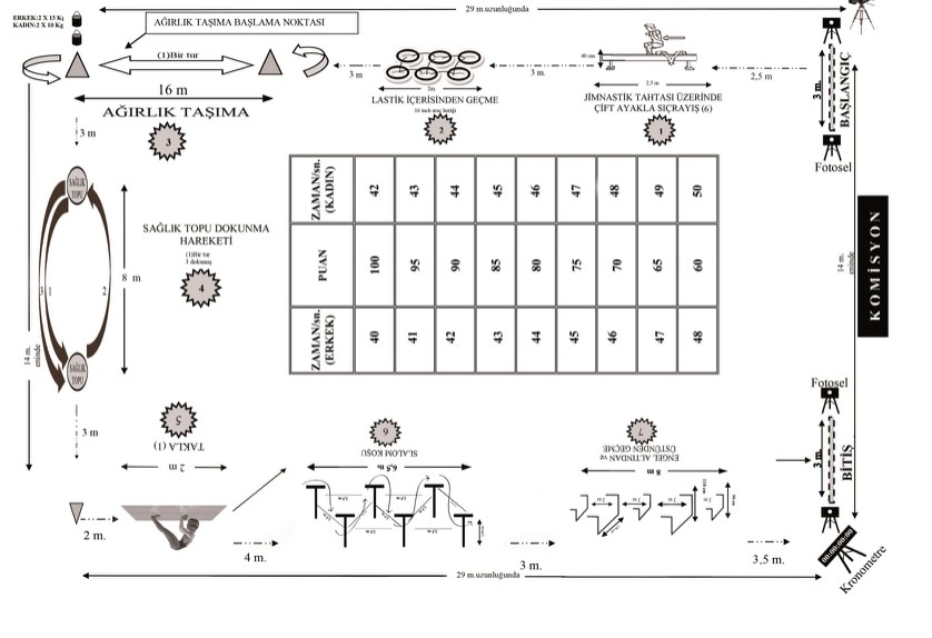Bu sınavlardan en zoru ve belirleyici olanı pomem fiziki parkur ve yeterlilik sınavıdır. Adaylar belli bir alanı, farklı ve her biri birbirinden zor hareketlerle tamamlamalı ve parkurdan geçer not almalıdırlar. Normal hazırlanmadan giden bir adayın yeterlilik parkurundan geçer not alması çok zordur. Hatta geçer not yetmemekte, pomem kazanmanız için yüksek puan anlamız gerekmektedir. Ne kadar yüksek puan o kadar kazanma şansı demektir. Diyarbakır ilinde pomem fiziki parkur ve yeterlilik kursuna hazırlanmak için bize ulaşın. Fiziki yeterlilik puanınız, başarı puanınızın 3’te biridir. Bu nedenle 70 alan ile 100 alan farklıdır. Üstelik binlerce öğrenci referansı ile kazanmamanız neredeyse imkansız. Fiziki Parkur şu şekilde olmaktadır:
