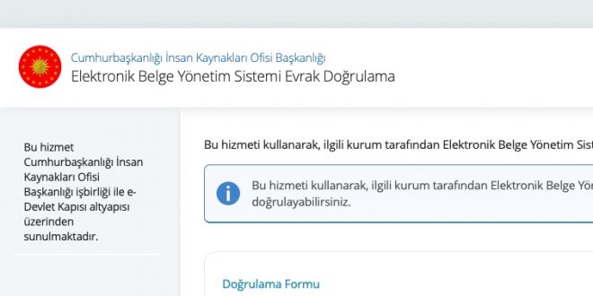 2020 yılında bir milyardan fazla defa ziyaret edilen Türkiye’nin dijital devlet portalı eDevlet, yeni hizmeti olan Elektronik Belge Yönetim Sistemi Evrak Doğrulama hizmetini yayına aldı. Bu hizmet ile herhangi bir resmi kurum tarafındanElektronik Belge Yönetim Sistemi (EBYS) ile oluşturulan evrakları resmi kalandan doğrulayabilirsiniz. Bu işlem için aşağıdaki verileri doğrulama formuna girmeniz gerekmektedir: