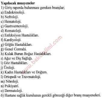 Tam teşekküllü hastanelerde neler yapılacak hangi branşlarda işlemler yapılacak, yönetmelik içerisinde geçen ve ek olarak yönetmelik sonunda belirtilen bilgiye göre Emniyet Teşkilatına alınacak öğrencilerin girecekleri muayeneler