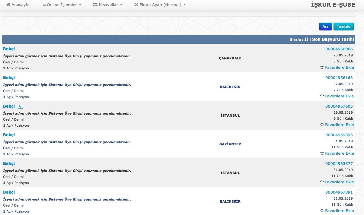 Sa. Bubekçilik sınavları ne zaman açıklanacak yahu. İnsanlar iş bekliyor ihtiyaç sahibi insan var binlerce. Neden bu kadar aksatıyorlar bu işi anlamadım. İnsanları işten soğutuyorlar. Başka iş buluyorum ama devamlı eleman aradıkları için giremiyorum. Belki bekçide olamıcam ama diğer yandan o işide kaçırmış oluyorum. Yazık günah yahu