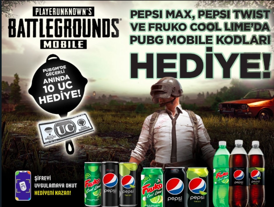 Pepsi, 2022 yılında bedava oyun hakları, paraları ve UC gibi hediyeler ile yoluna hızla devam ediyor. Yeni kampanya ile PUBG Mobile’de bedava UC kazanabilir, eğlenceye kaldığınız yerden devam edebilirsiniz. Pepsi Max, Pepsi Twist ve Fruko Cool Lime’larda yer alan 10 haneli kapak kodunu girerek siz de 10 UC hediyenizi bedava alabilirsiniz. Yapmanız gereken kazandırır uygulamasında gerekli adımları izlemek!