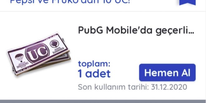Pepsi kodları ve hediye UC kodları tek kullanımlıktır. Kampanyada herhangi bir sınır bulunmamaktadır. Sınırsız bedava UC hediye kodu alabilirsiniz. Pubc GM Uc hediye kodunuz profilinizdeki telefon numarasına tanımlanıp cüzdanınıza atılır. Cüzdanda hediye kodunuzu tıklayarak bedava UC kazandıran şifreyi alabilirsiniz.