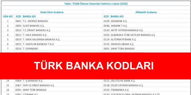 Türk Banka Kodları