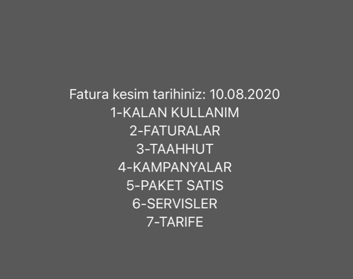 - Tuşlama alanına gidip *124# kombinasyonunu onaylayın. Aşağıdaki ekran gelecektir.