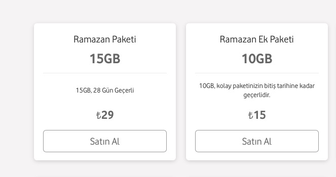 15 GB internet için 29 TL fazla diyen vodafone aboneleri daha düşük olan 10GB interneti 15 TL tutarla alabilirler. Vodafone şimdilik 2020 ramazan ayı için bu ek paketleri duyurdu ve alıma açtı.