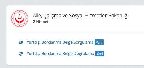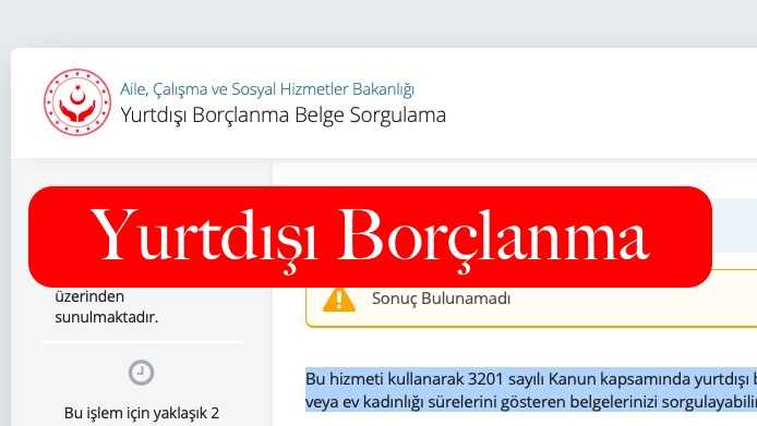 Türk vatandaşlarının devlet ile olan ilişkilerini hızlandıran, sanallaştıran ve bilişim sistemine entegre eden e-devlet portalına yeni hizmetler eklenmeye devam ediyor. Yeni hizmete alınan sistemlerden biri de yurt dışı belge borçlanma sorgulama ve belge doğrulama hizmetidir. Aile, Çalışma ve Sosyal Hizmetler Bakanlığı bünyesinde hizmet sunan sisteme e-devlet portalı üzerinden e-devlet bilgilerinizle giriş yapabilirsiniz.